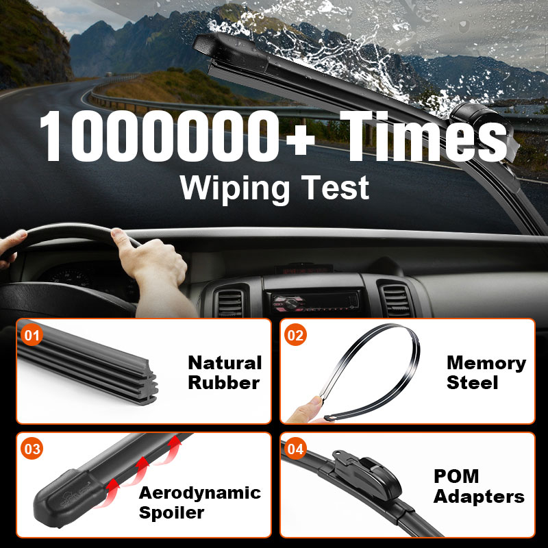 Våra ramlösa vindrutetorkare täcker storlekar från 12 "till 28", montering av bilar, SUV: er och skåpbilar med lätthet. De håller längre än standardblad och stöder säker, orofri körning.