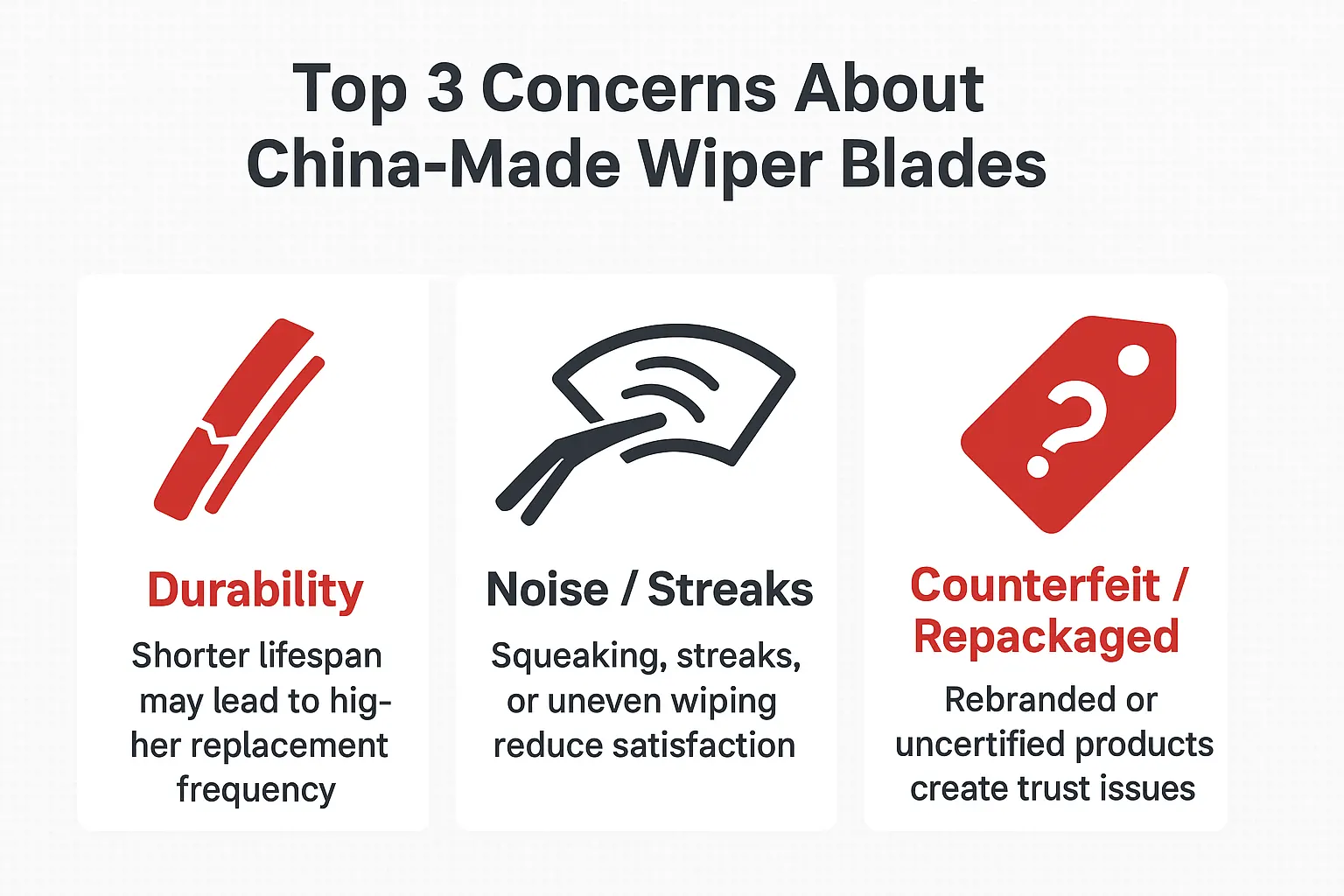 Om du är en bilverkstadsägare eller distributör kanske du fortfarande tvekar att köpa torkarblad från Kina. Kanske har du hört historier om ränder, gnisslande eller delar som slits ut för snabbt. Eller kanske någon nämnde en batch som inte passade ordentligt. Dessa upplevelser, även om de är verkliga i vissa fall, kommer ofta från föråldrade leverantörer eller lågprismärken – inte från moderna, certifierade tillverkare.